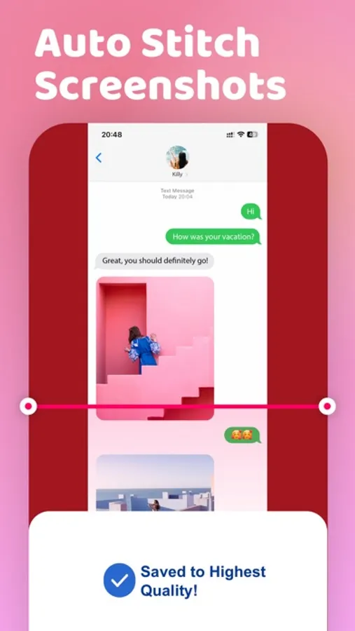 Easily stitch iPhone and iPad photos together. Automatically merge multiple screenshots into one long screenshot.