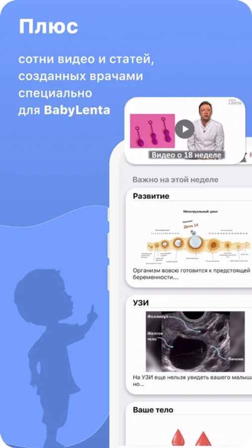 • Сотни статей о беременности и видео о беременности, разработанных специально для BabyLenta