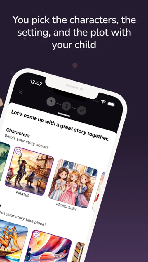 The app supports families with multiple kids with the ability to create profiles and switch between them when you're creating the stories together.