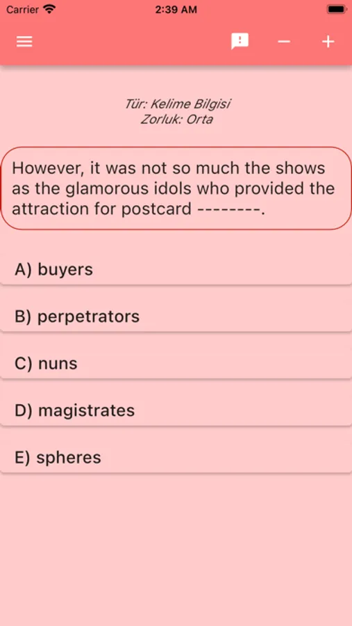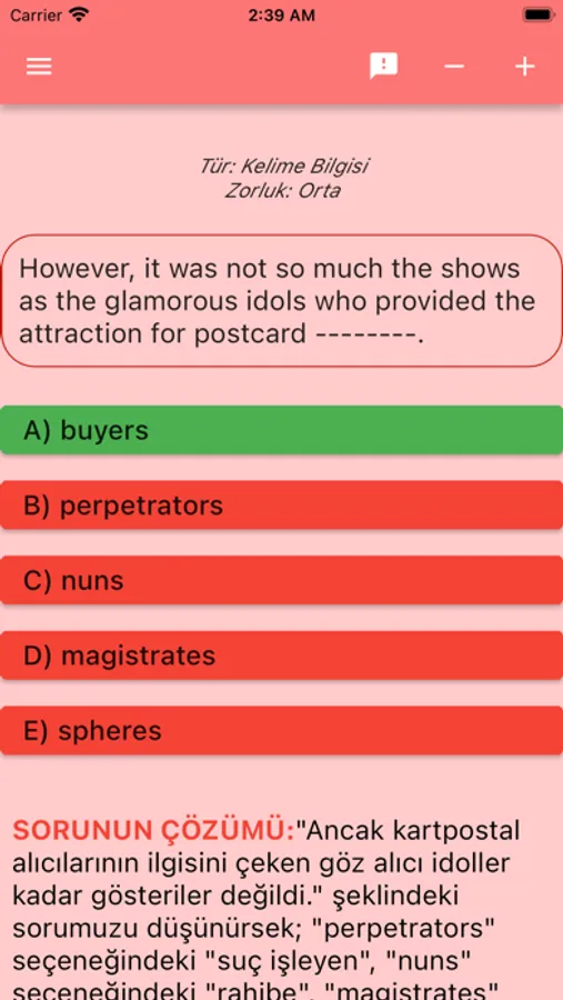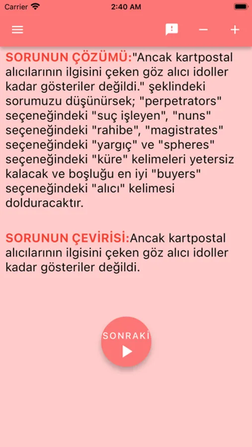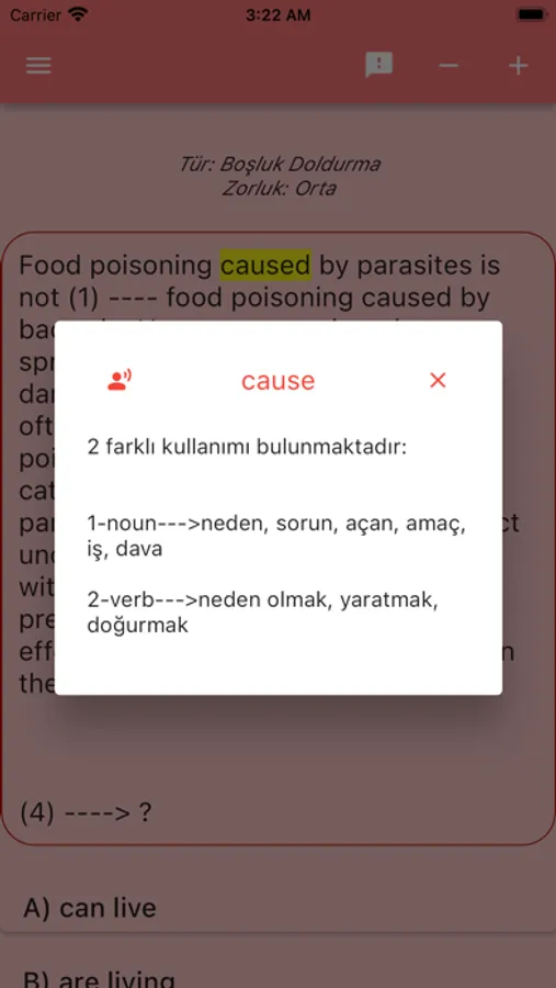 Sorulardaki tüm kelimelerin anlamını anında sözlükten öğrenebilme!