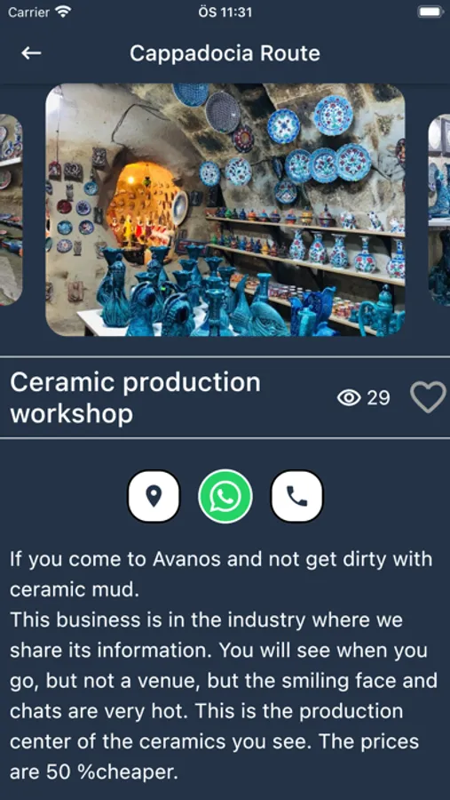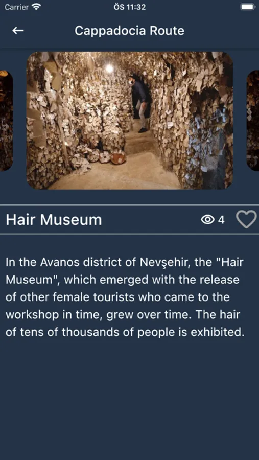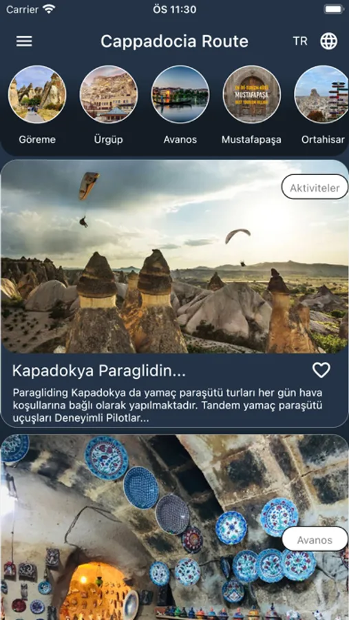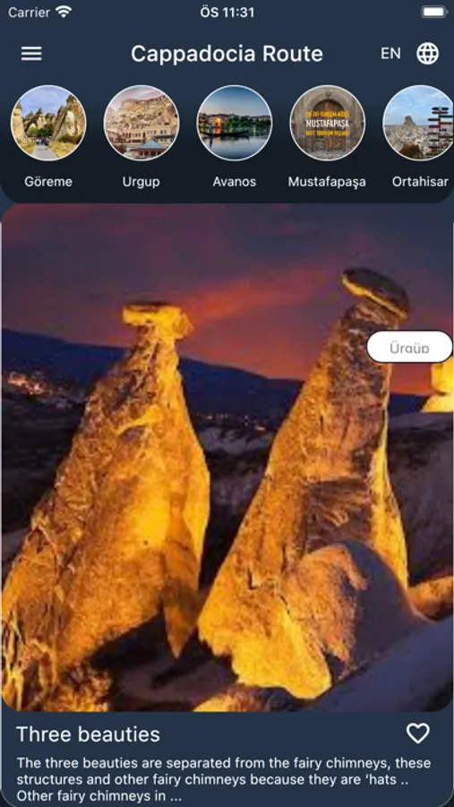 Kapadokya da ki mutlaka gezilip görülmesi gereken doğal oluşum ve tarihi yapıların, oluşum sürecini veya açıklamasını sesli dinlerken, görsellerini inceleyip, gitmeye karar vermeniz durumun da bir tıkla konuma ulaşabilirsiniz.
