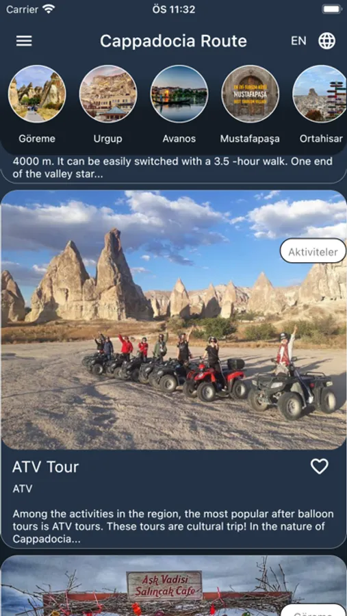 Cebinizdeki Kapadokya rehberi. Kapadokya’nın güzellikleri keşfetmenizi, Kapadokya’ya gittiğinizde çok daha verimli şekilde zamanınızı kullanmanızı sağlar. Kapadokya’daki etkinliklerden veya gittiğiniz restoranlardan uygulamanın sayfasında indirim kazanma imkânı sizi bekliyor.