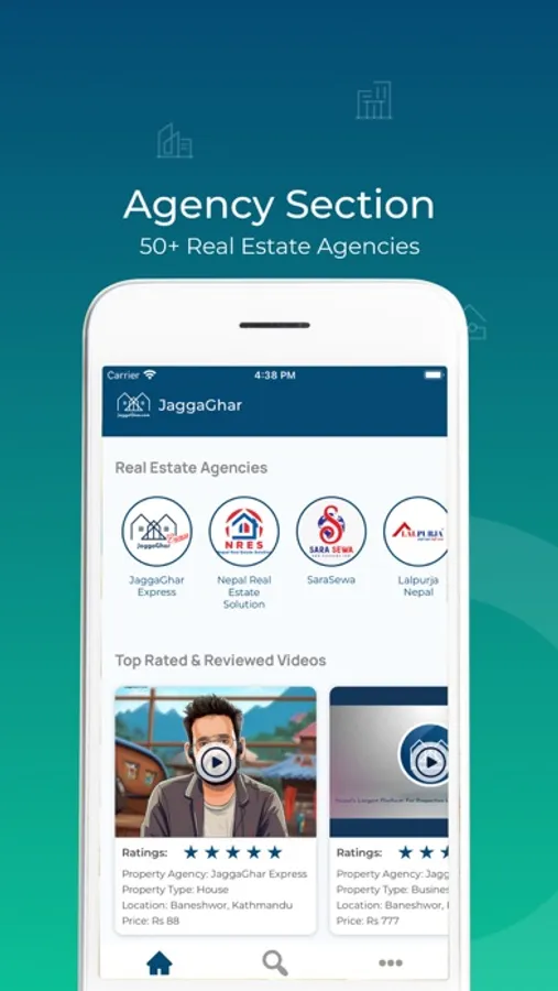 JaggaGhar app provides the largest platform for real estate videos and property listings in Nepal that specializes in providing the best real estate solutions to our clients. Our focus is to provide a seamless experience to our users, which includes both the real estate agencies, agents, influencers and the buyers.