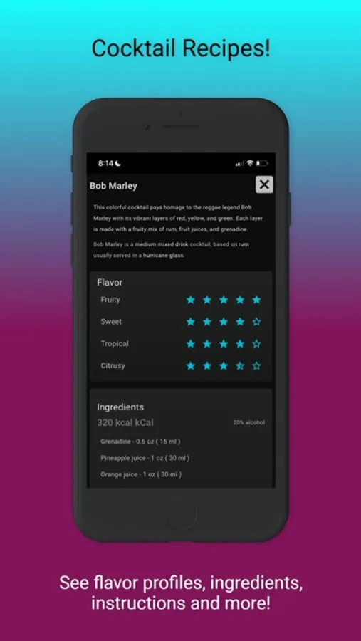 Meet Elixirate, your personal virtual bartender! Discover a world of cocktail recipes or create your own with ease. Our unique AI, MixMaster Steel, crafts custom cocktails tailored to your taste. Whether you're a cocktail enthusiast or a curious beginner, Elixirate is your go-to app for mixing drinks. Enjoy the art of mixology right at your fingertips!