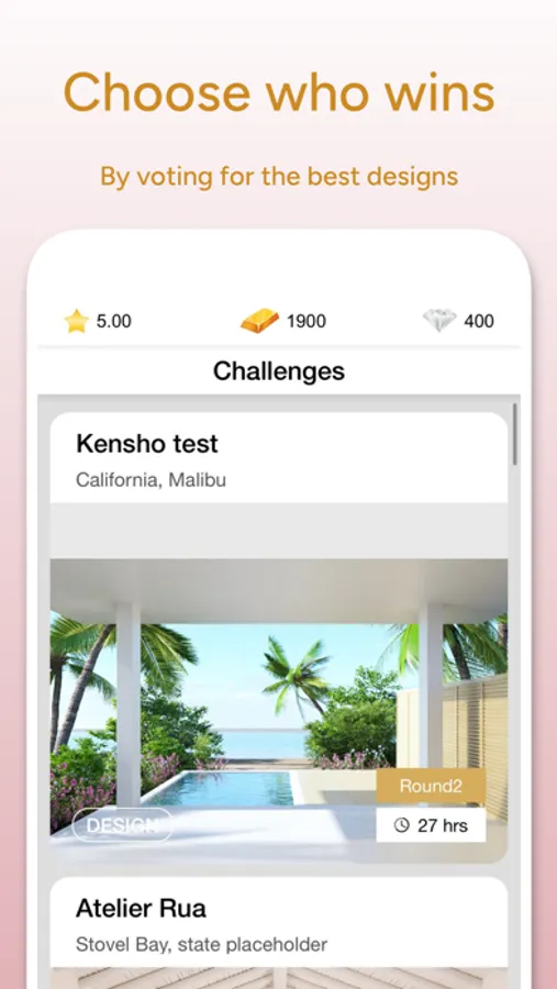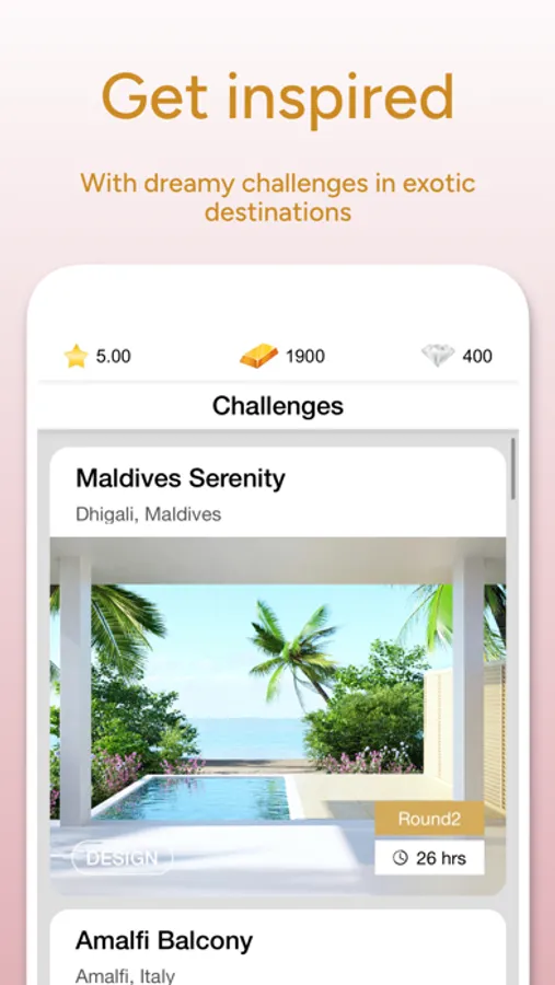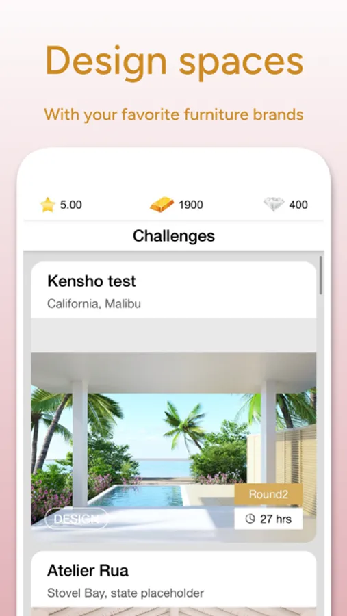 * Daily Design Challenges let you style stunning photo-realistic spaces.