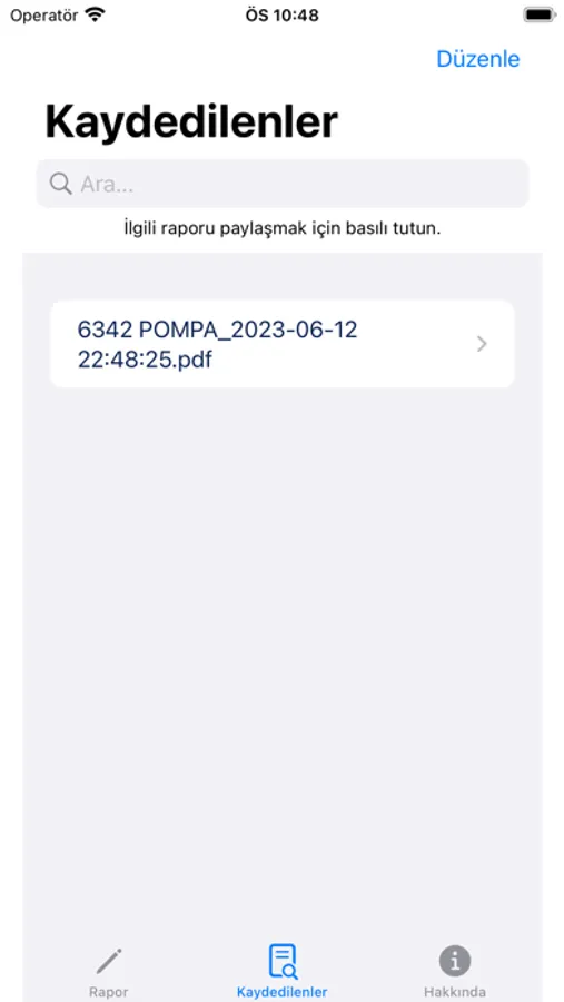 Tüm bu bilgileri girip "Kaydet" butonuna bastığınızda, uygulama otomatik olarak tüm bu bilgileri bir PDF dosyasına dönüştürür ve cihazınızda güvenli bir şekilde saklar. Kaydettiğiniz tüm PDF'leri "Kaydedilenler" sekmesinden görüntüleyebilir ve istediğiniz zaman paylaşabilirsiniz.
