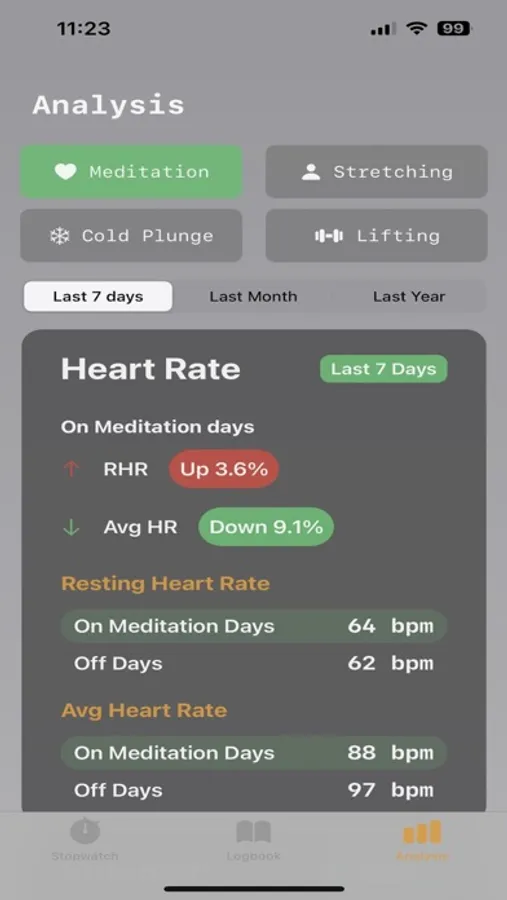 You can log your sessions and, with our integration with the Health app, connect them to a broader spectrum of your health data. By doing so, you can uncover patterns, monitor progress, and make data-driven decisions about your wellness journey.