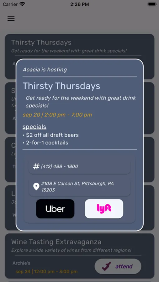 Never Miss an Event: Stay in the loop with live event updates. From live music and DJ nights to trivia and karaoke, we have it all.