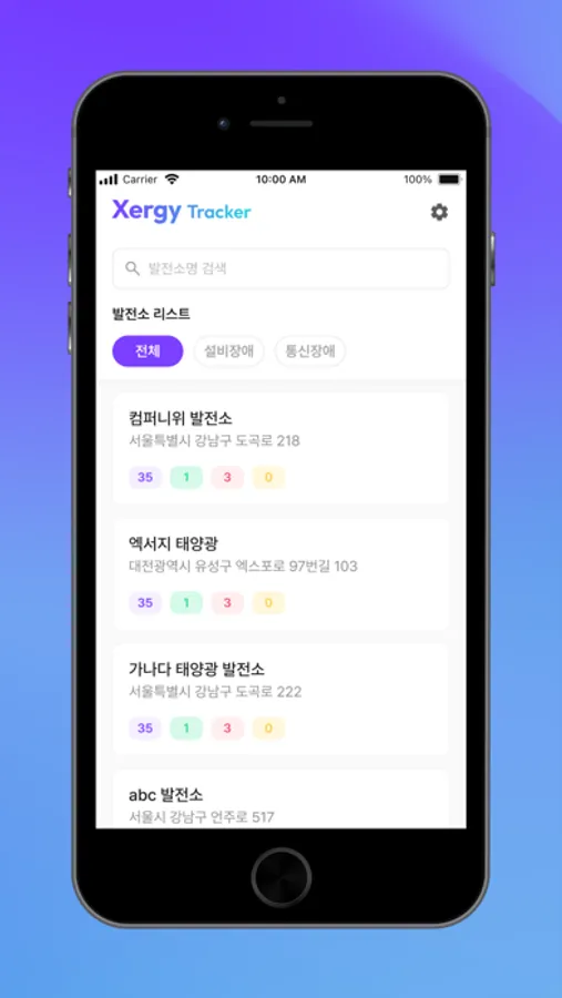 Xergy Tracker는 추적식 태양광 발전소의 트래커를 통합 관리, 원격 제어 및 설비 오류를 실시간으로 파악할 수 있습니다.