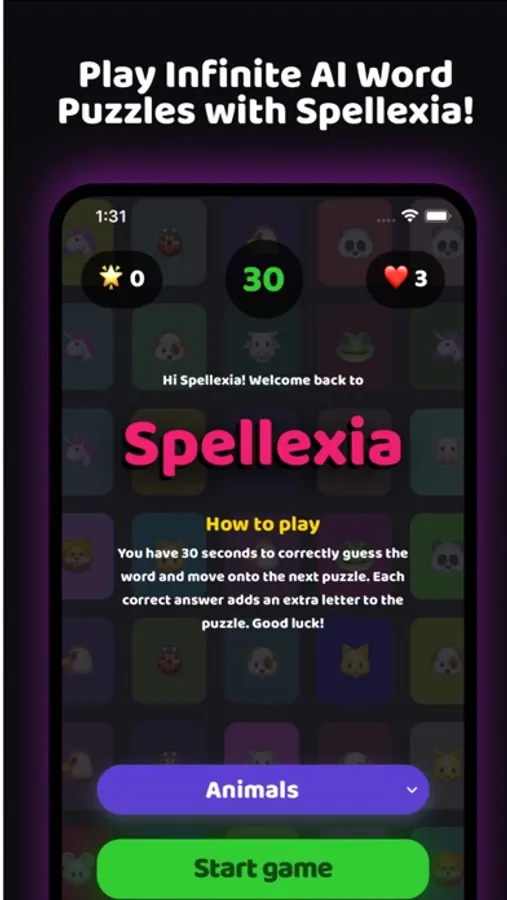 Spellexia is an exhilarating word game that puts your vocabulary, reflexes, and spelling skills to the test! With the help of advanced AI technology, challenge yourself to guess the word within a thrilling 30-second time frame, and unlock the next exciting word puzzle. Every correct answer unlocks an additional letter, making each level more intriguing than the last.