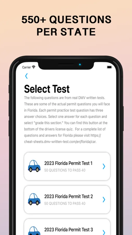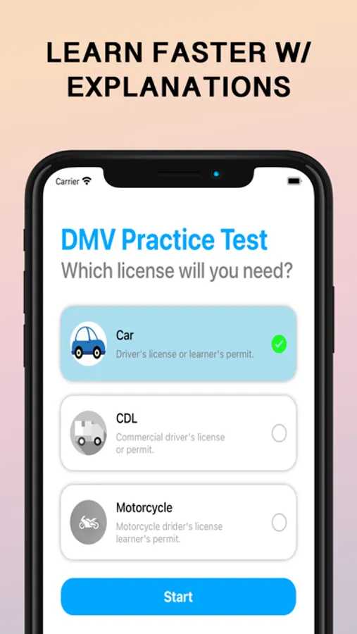 2023 DMV TEST has courses for Car, CDL and Motorcycle of all states of america and provides a convenient and interactive way to study and review important traffic rules, road signs, and driving laws specific to your state.