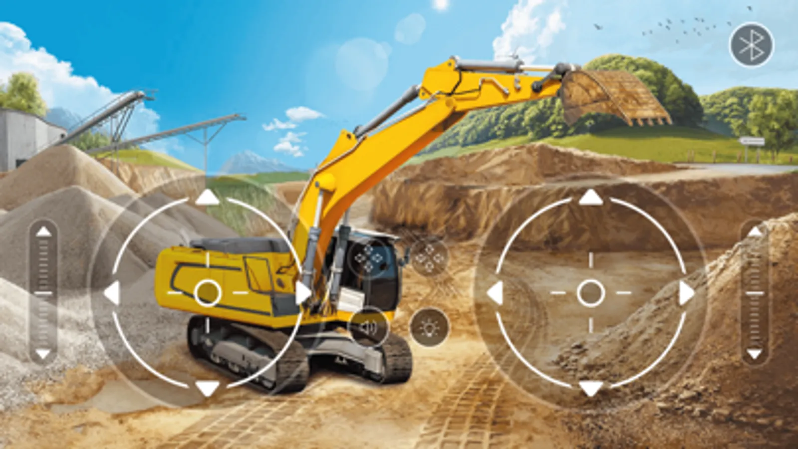 汇纳模型工程车配套手机操控APP,模拟手柄操作,可以控制行走、转向、挖掘动作及灯光声效,让操作者获得全新的APP遥控体验。