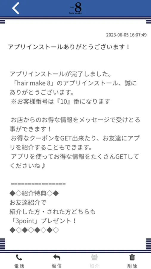 huit 8のアプリをSNSを通じてお友達に紹介する事ができます。