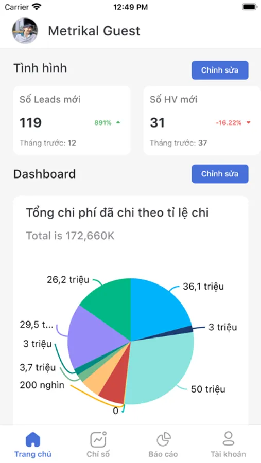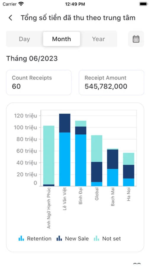 - Quản lý, thống kê, báo cáo số liệu doanh thu, chi phí của trung tâm đào tạo một các trực quan thông qua hình ảnh, biểu đồ, quản lý nhiều chi nhánh một lúc không thành vấn đề