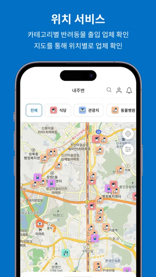 반려동물 동반출입 시설을 카테고리별로 바로 찾을 수 있어요!