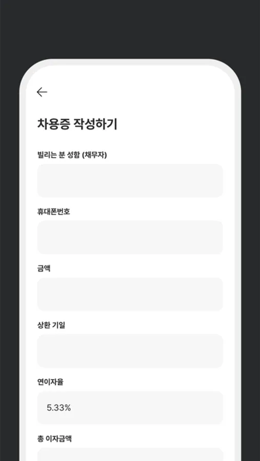 비대면으로 1분 만에 작성하고 간편하게 발급하는 전자 차용증 서비스를 제공하고 있어요.