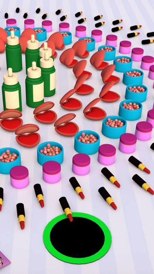 This makeup collection game is both fun and challenging, requiring players to guide a black hole through various obstacles to collect makeup items within the scene.