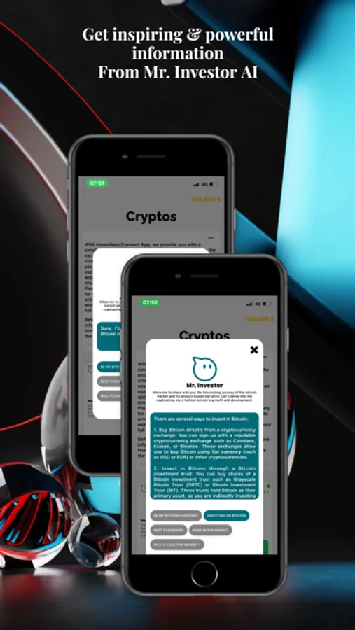 - Meet Mr. Investor AI: Harness the power of AI with our intelligent assistant, Mr. Investor AI. Ask important market questions and receive invaluable insights tailored to specific coins. Leverage AI-driven analysis to gain a competitive edge, boost your trading knowledge, and make better investment decisions.