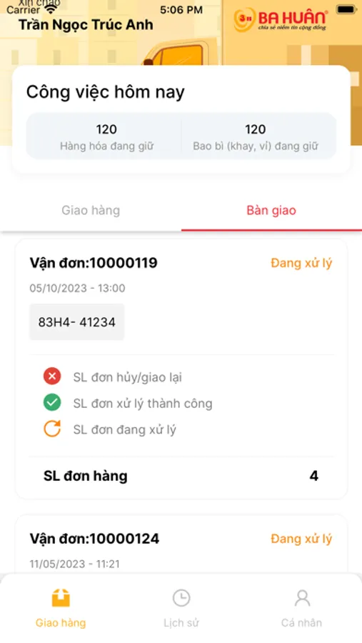 Ứng dụng Ba Huan Delivery giúp người dùng theo dõi tất cả các đơn đặt hàng của chuyến giao hàng và trạng thái giao nhận hàng trở lên thuận lợi, dễ dàng hơn rất nhiều khi sử dụng trên thiết bị smartphone.