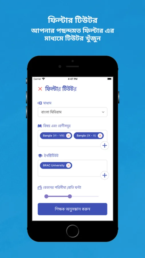 • Find nearest tutors (tutors go through some tests/exams before boarding in our platform).