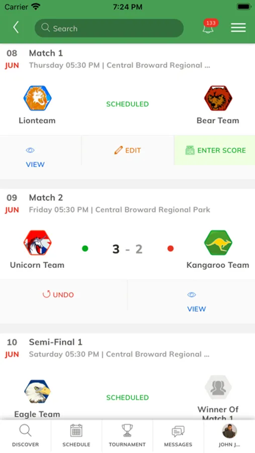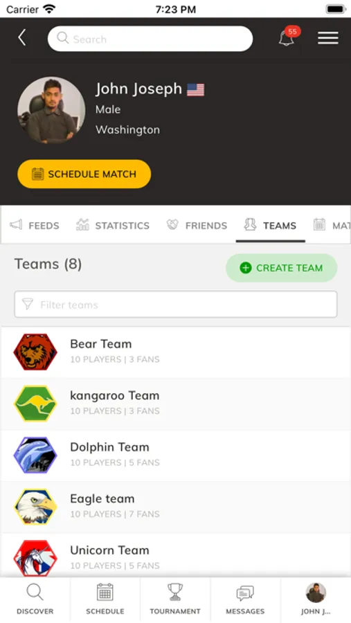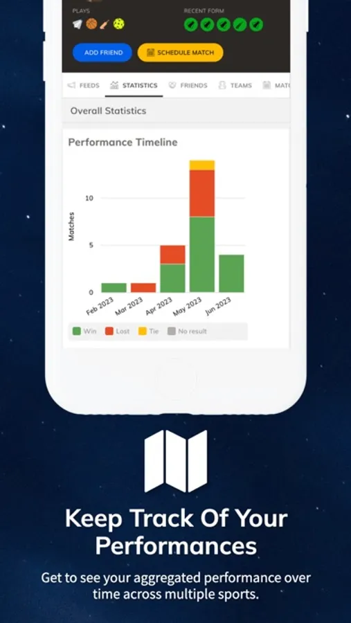 Schedule practice matches and challenge more players and teams.