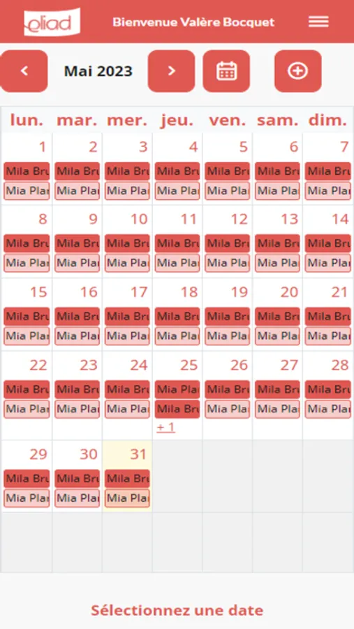 - l'Agenda : Pour consulter vos prestations, demander des modifications, des compléments ou des suppressions