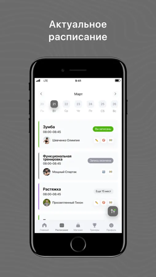 Посмотреть актуальное расписание тренировок;