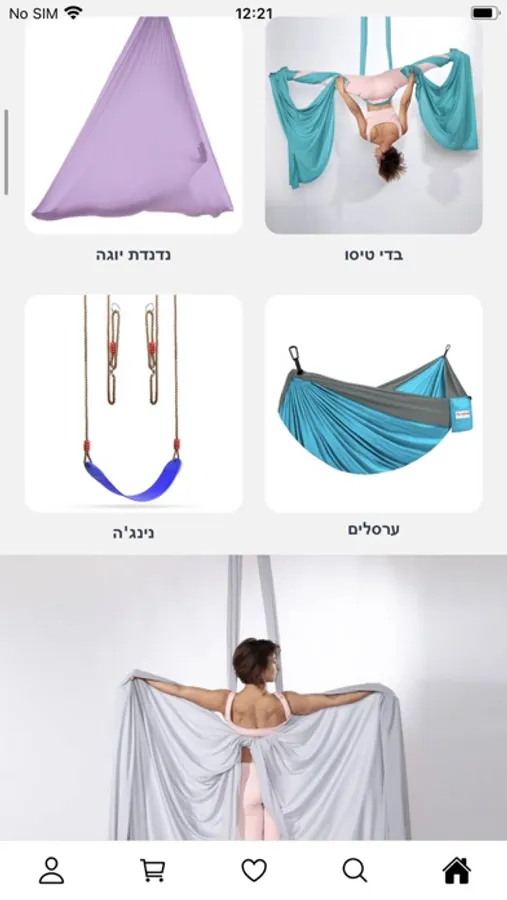 אצלנו בtissuly תוכלו לרכוש בדי טיסו לקנייה להתקנה ביתית, ערסלי יוגה, נדנדות ועוד.