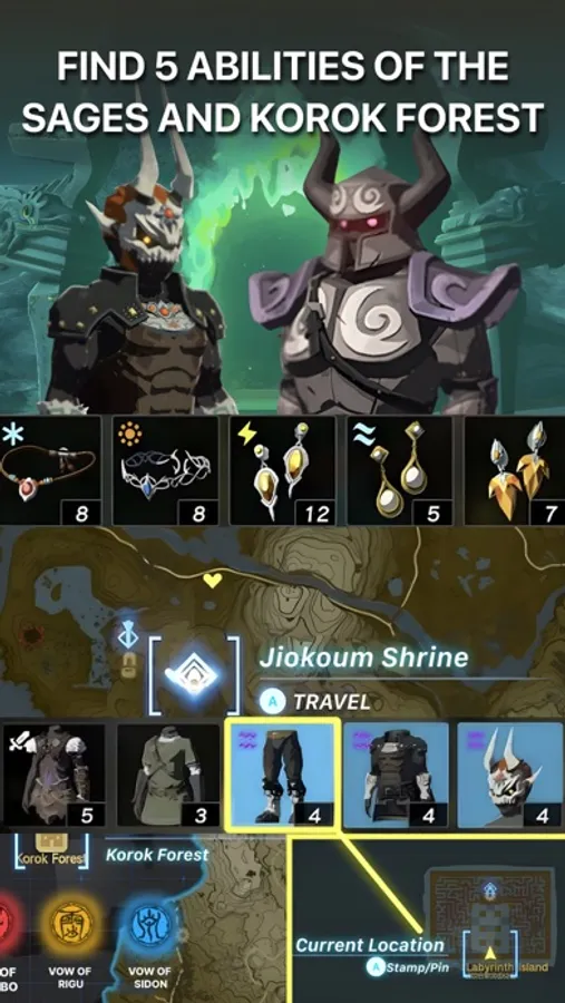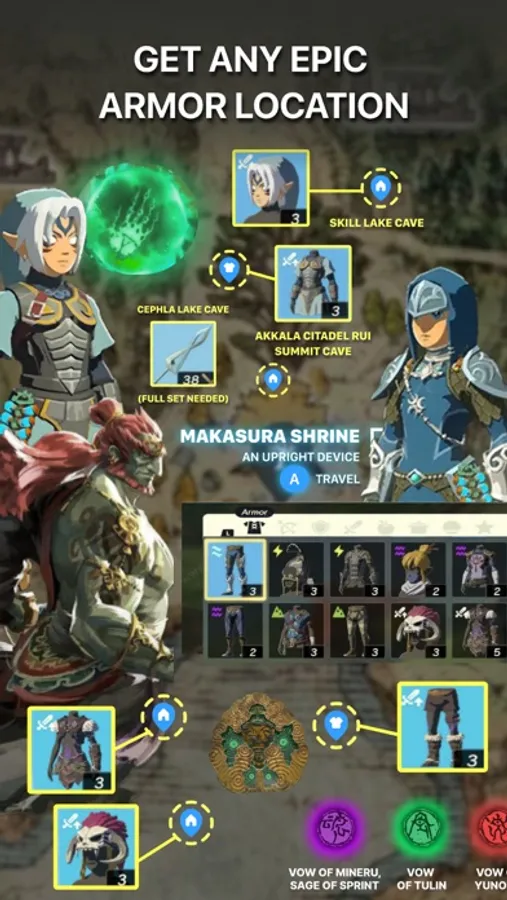 Unleash your inner hero as you navigate the vast and breathtaking landscapes of Tears of the Kingdom. Our app provides you with detailed gameplay guides. From lush forests to treacherous mountains, explore every nook and cranny using our interactive map, featuring stunning visuals and useful markers.