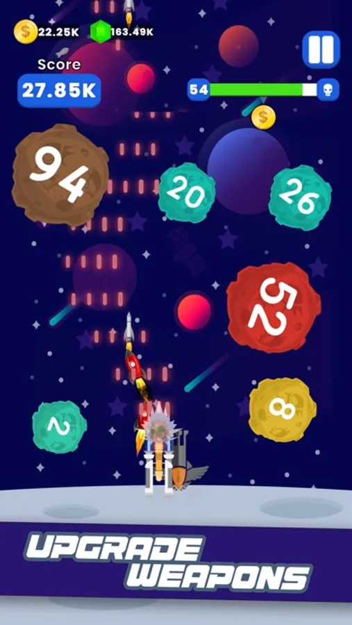 - Use your earned coins to upgrade your weapons and become an unstoppable cosmic force.