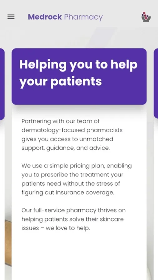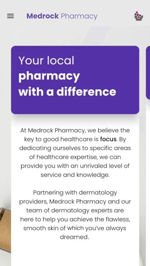 - Expertise in Dermatology Compounding: MedRock Compounding Pharmacy is a trusted name in the dermatology industry, renowned for our expertise in personalized compounded medications. Our app brings our expertise directly to your fingertips.