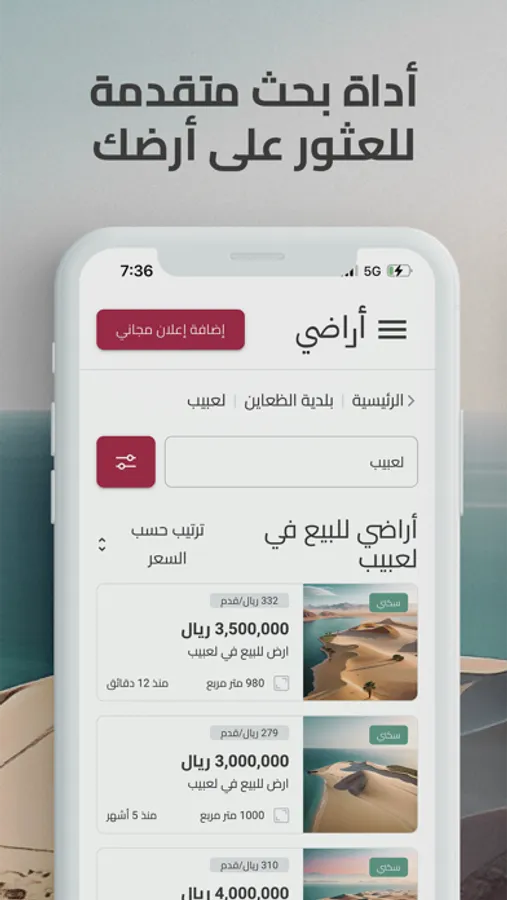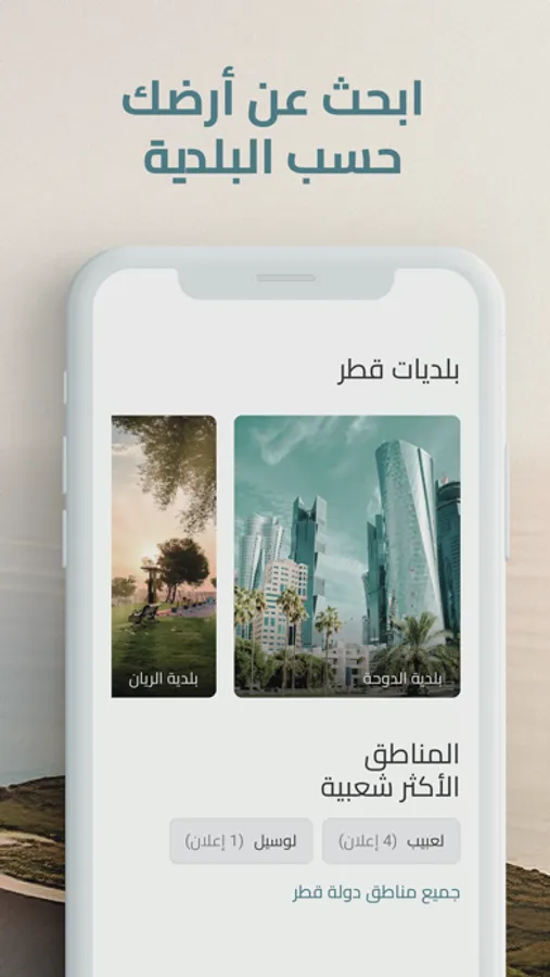 نحن نعمل بجد واجتهاد على مدار الساعة لإنشاء منصة تكون رائدة ومبتكرة في مجال الأراضي في قطر. لمستخدمينا، تبدأ الرحلة ببحث سريع للعثور على أي قطعة أرض متاحة للبيع. وكوننا منصة تعتمد بشكل كبير على البيانات، فإننا نربط المستخدمين بأحدث أسعار معاملات الأراضي، مما يمكنهم من اتخاذ قرار سهل وواضح من خلال مقارنة الأسعار.