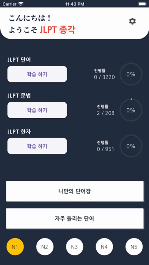 1. N1급~N5급 단어 학습 (1급 데이터는 일부만 표시)