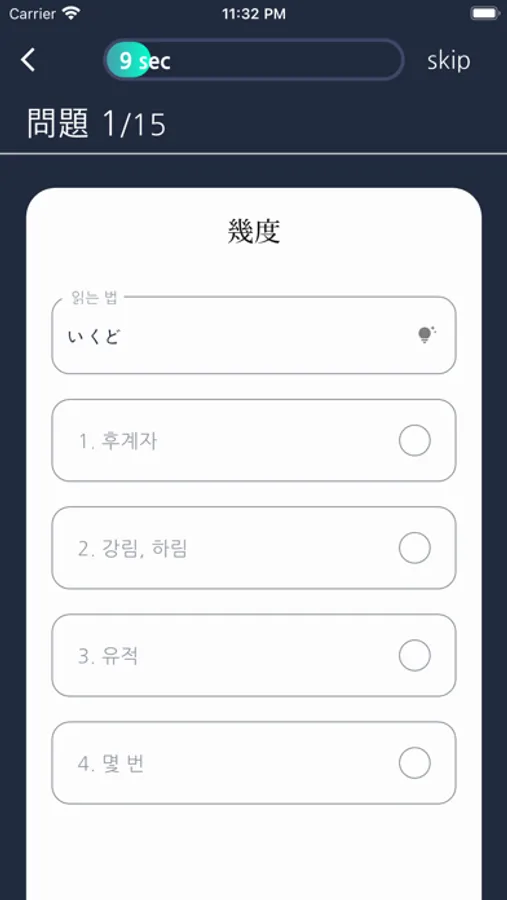 [단어의 의미 (사지선다형) + 단어의 읽는 법 (주관식)]