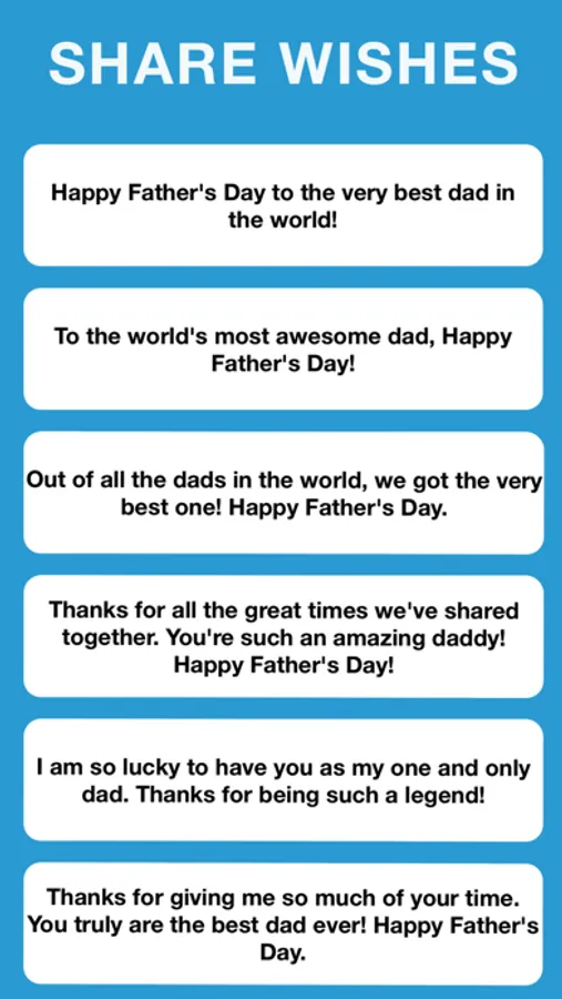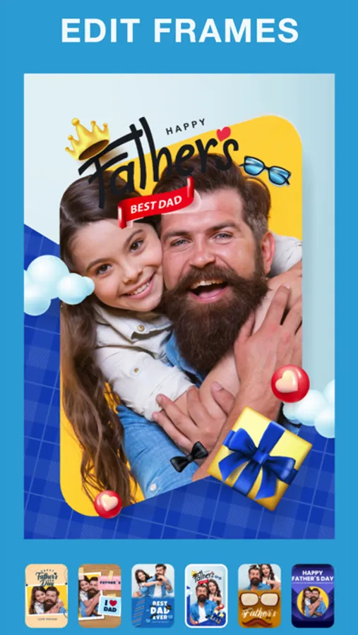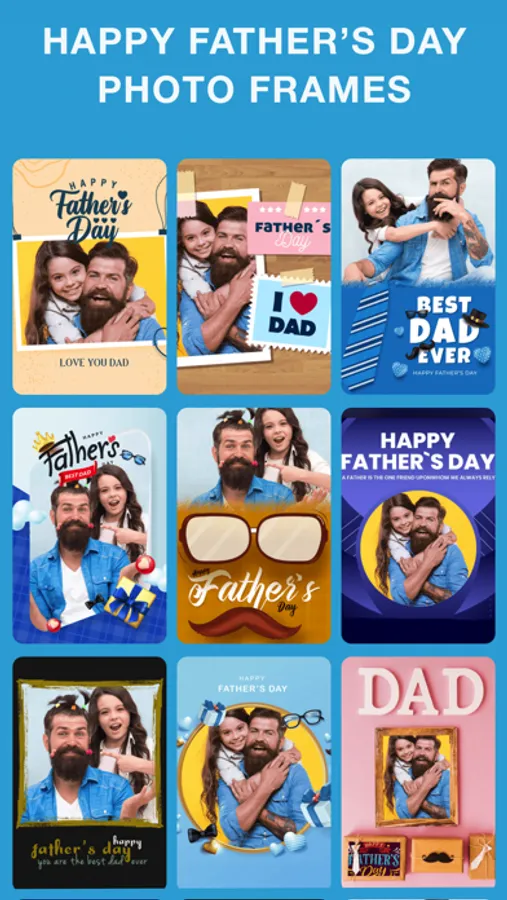 Fathers Day is a day to celebrate fatherhood. A day to honour and celebrate the presence of your father in your life. There are many Fathers Day HD photo frames and stories to choose from. You can instantly frame up your photo. Explore this Fathers Day app and frame all special moments. You can send fathers day e-card greetings or simply save as wallpaper. You can also share as Fathers Day greeting wishes.
