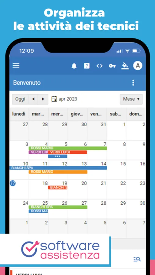 Un pratico planning ti consente di gestire gli appuntamenti di assistenza per i tuoi clienti e assegnare i tecnici che si occuperanno dell'intervento.