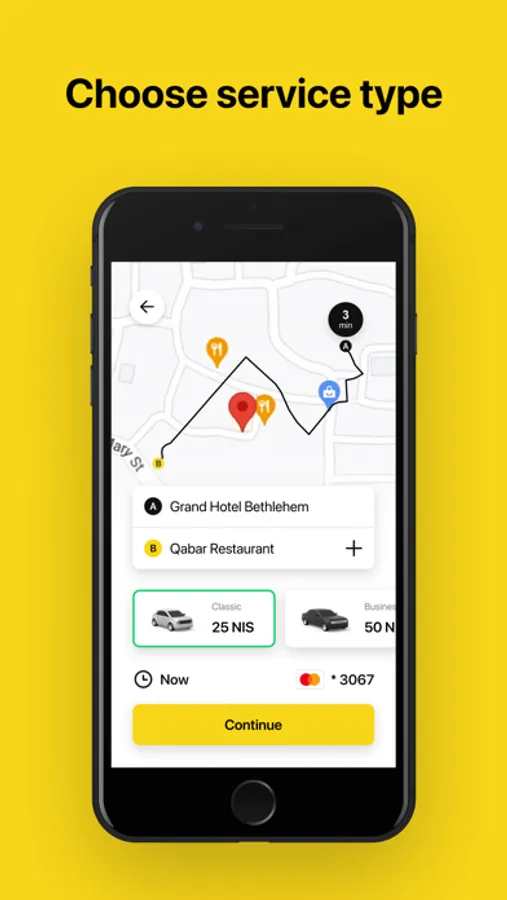 Mashaweer West Bank app is a taxi online service in Bethlehem, Palestine. You can book a taxi online in a few clicks, without unnecessary action. Now you don't have to call a driver to book a taxi.