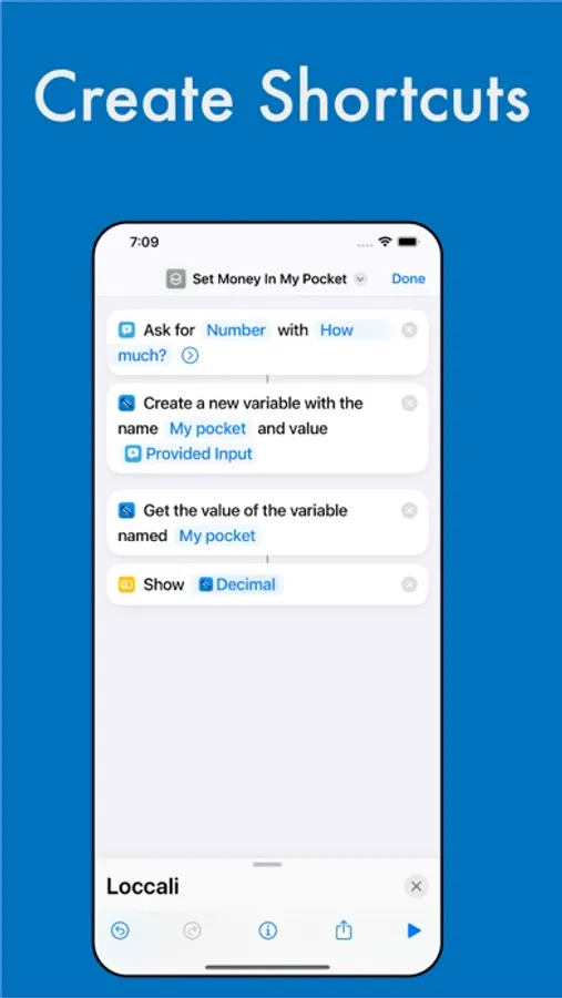 - Seamless Shortcuts Integration: Loccali's extensive support for Shortcuts enables direct and effortless interaction with your global variables, enhancing your device's functionality and your productivity.