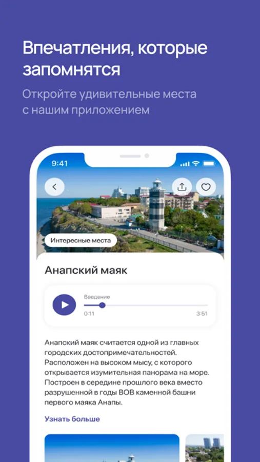 А чтобы было еще интереснее, для всех объектов в приложении доступны панорамы и виртуальные туры. Вы сможете оценить красоты Анапы в полном объеме, не выходя из дома.