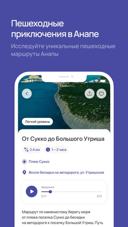 А если вы предпочитаете прогулки, в нашем приложении есть пешие маршруты по городу и его окрестностям. Вы сможете исследовать достопримечательности Анапы любым удобным вам способом, будь то на автомобиле, пешком или на велосипеде.