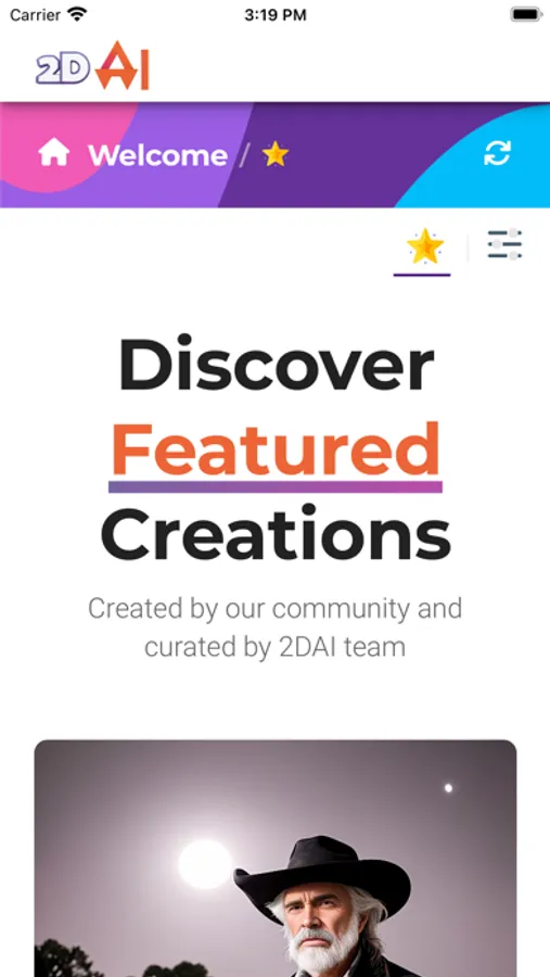 You can use our app to discover featured creations created by our community and curated by the 2DAI team. You can also convert them into a 3D image and interact with them!