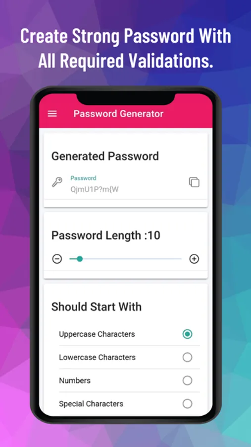 The application includes a Password Generator tool that assists users in creating highly secure passwords.
