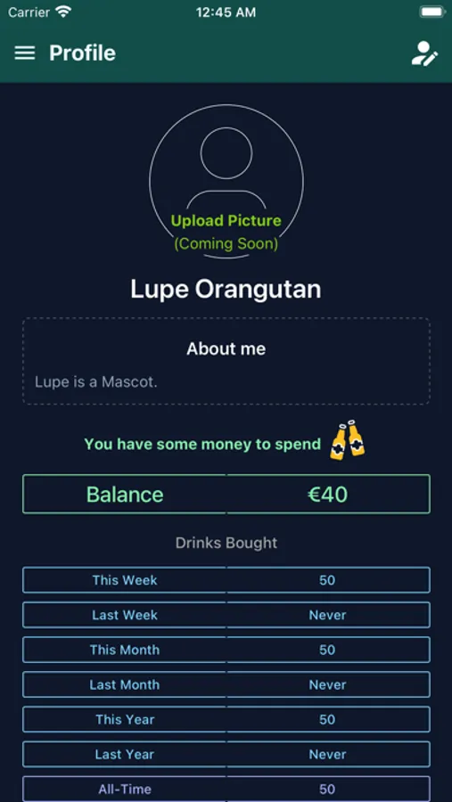 Thanks to a secure authentication and authorization system, only you and the Drink Manager (Bierwart) can modify your data, so no one would be able to sneakily put drinks on your tab anymore.
