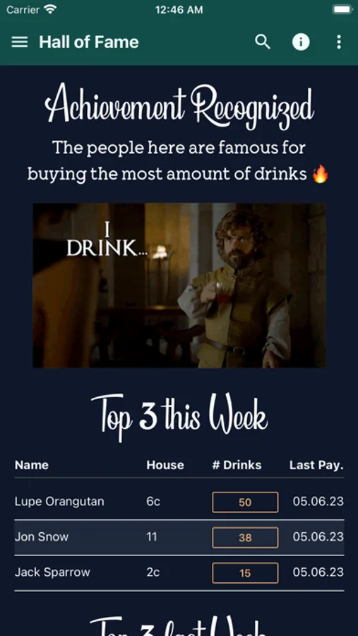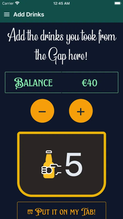 You don't have to write your name or draw lines on a sheet of paper anymore, you can now quickly and easily add drinks to your tab right here in the Gapp!