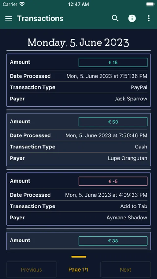 All data, including transactions, are there for everyone to see. Except private data which only you and the Drink Manager can see (e.g: Email, Phone Number).