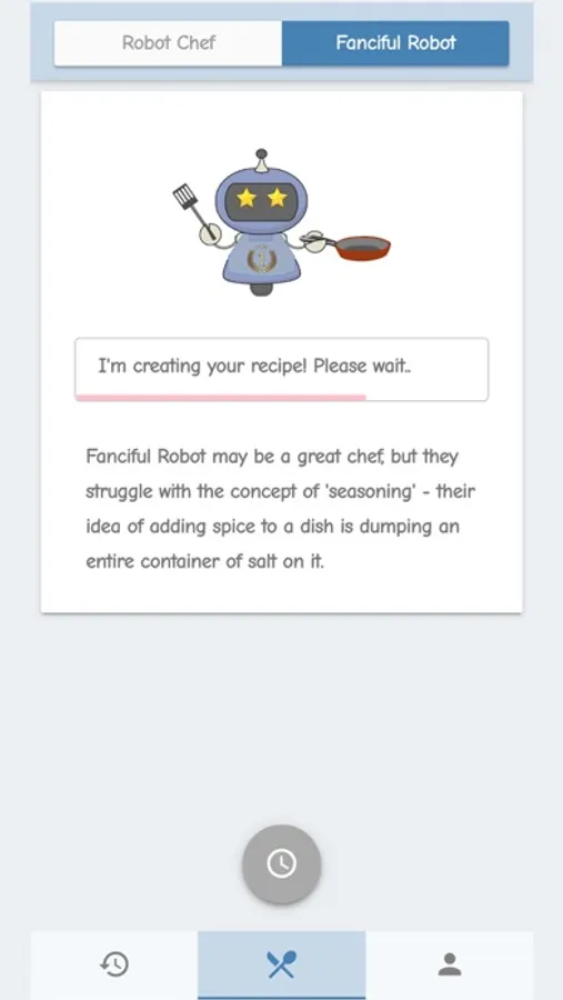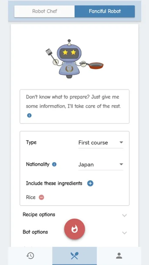● Let's meet Fanciful Robot too: this bot will surprise you with a random dish and a fun recipe. You can give some details like the dish's nationality, type, and ingredients, and Fanciful Robot will come up with a creative creation that will leave you amazed and entertained.