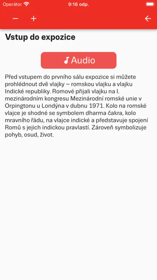 Chcete-li ještě více prohloubit své zážitky, můžete využít audio průvodce. Poslouchejte příběhy, kteřé vám přiblíží každou část vystavených artefaktů a sbírek. Prostřednictvím audio průvodce získáte hlubší porozumění romské kultuře a historii.