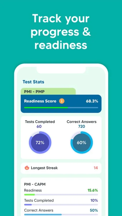 Our mobile app provides a personalized study plan based on your skill level, study frequency, and target test date. Not sure when you want to take the exam? You can adjust your study plan as often as you like. Our proprietary readiness score will help you determine when you’re ready to take the real exam and pass with a high score on your first try.