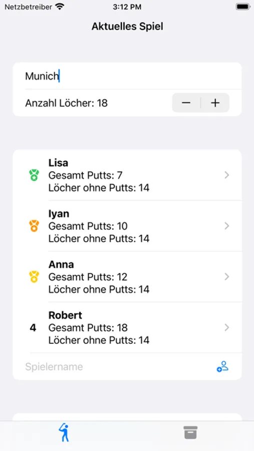 Game Tracking: Record every game and track the number of holes and players in real time. Our app can also keep count of the total putts and the number of holes without putts, ensuring you always stay on top of your game.