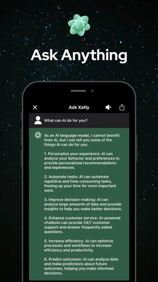 Xatly is an AI powered technology that can understand your questions and have a conversation with you, it will feel like you are chatting with a knowledgeable friend.